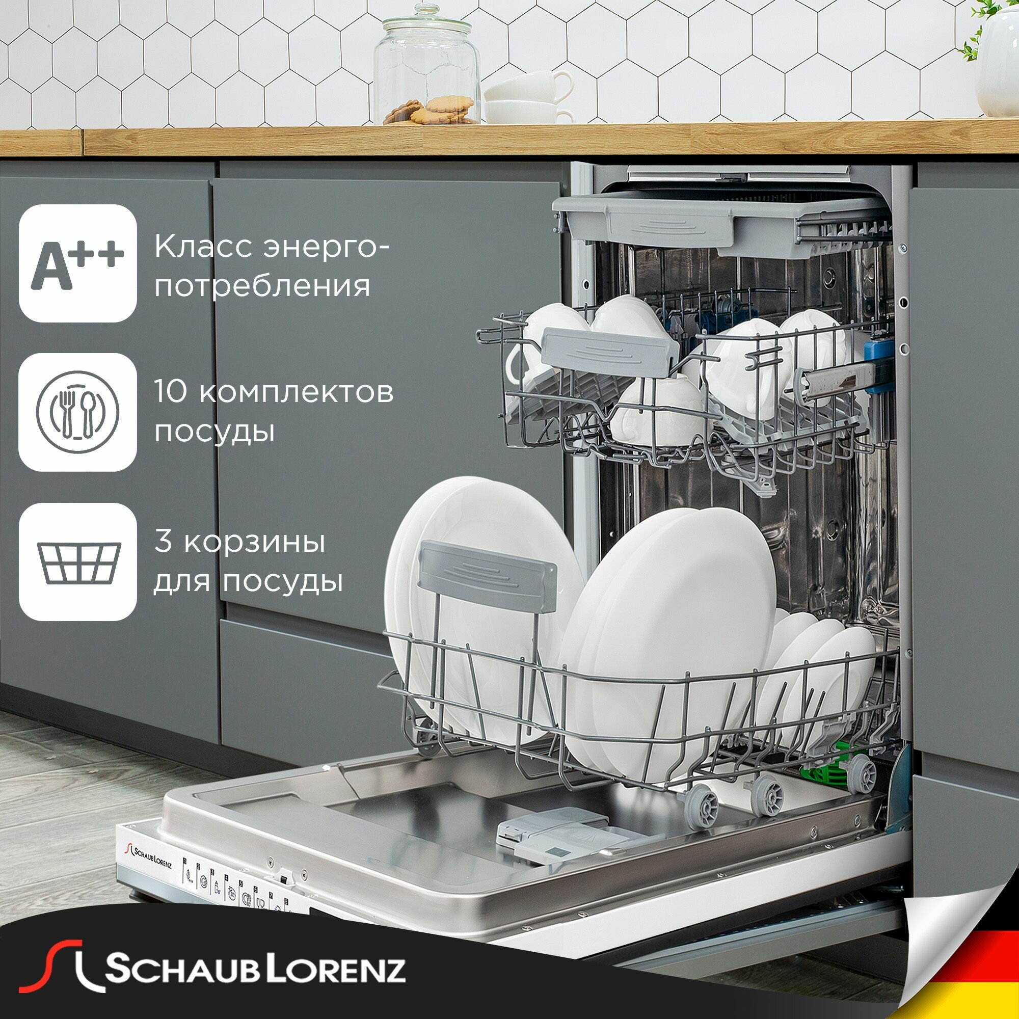 держатель для бокалов, корзина для столовых приборов, Встраиваемая посудомоечная машина SCHAUB LORENZ SLG VI4310, Встраиваемая посудомоечная машина; Инструкция по эксплуатации; Гарантийный талон., инструкция - 1 штука, лоток для столовых приборов