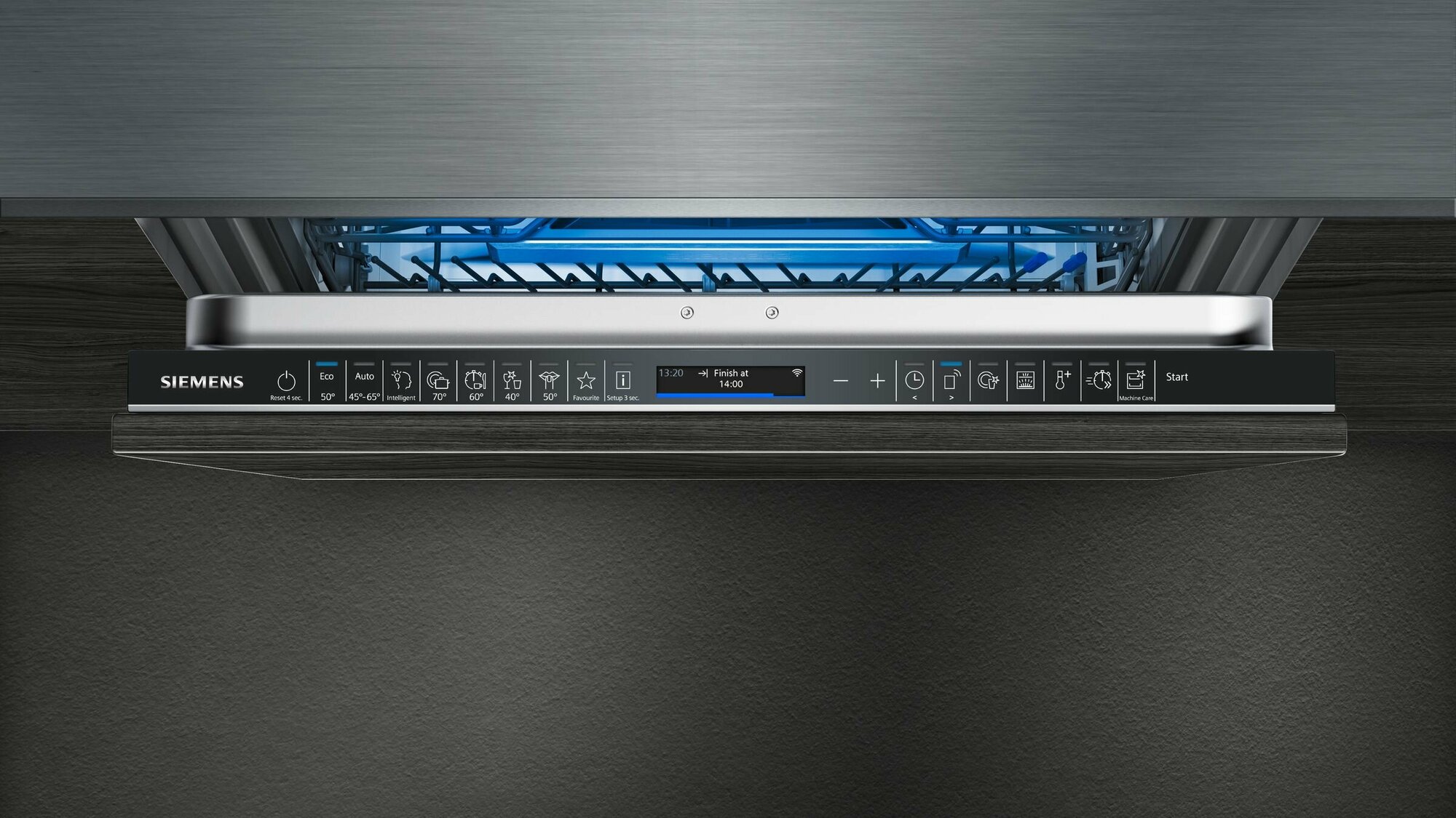 внутренняя поверхность из нержавеющей стали, дисплей, использование средств 3 в 1, подсветка камеры, сенсор чистоты воды, таймер отсрочки, Внутреннее освещение, Возможность добавления посуды после запуска, Датчик прозрачности воды, Звуковой сигнал, Мытье в верхнем коробе, Отключение звукового сигнала, Отсрочка запуска, Поддон для столовых приборов, Полка для чашек, Половинная загрузка, Регулировка высоты корзин, Таймер, автоматическое открытие двери