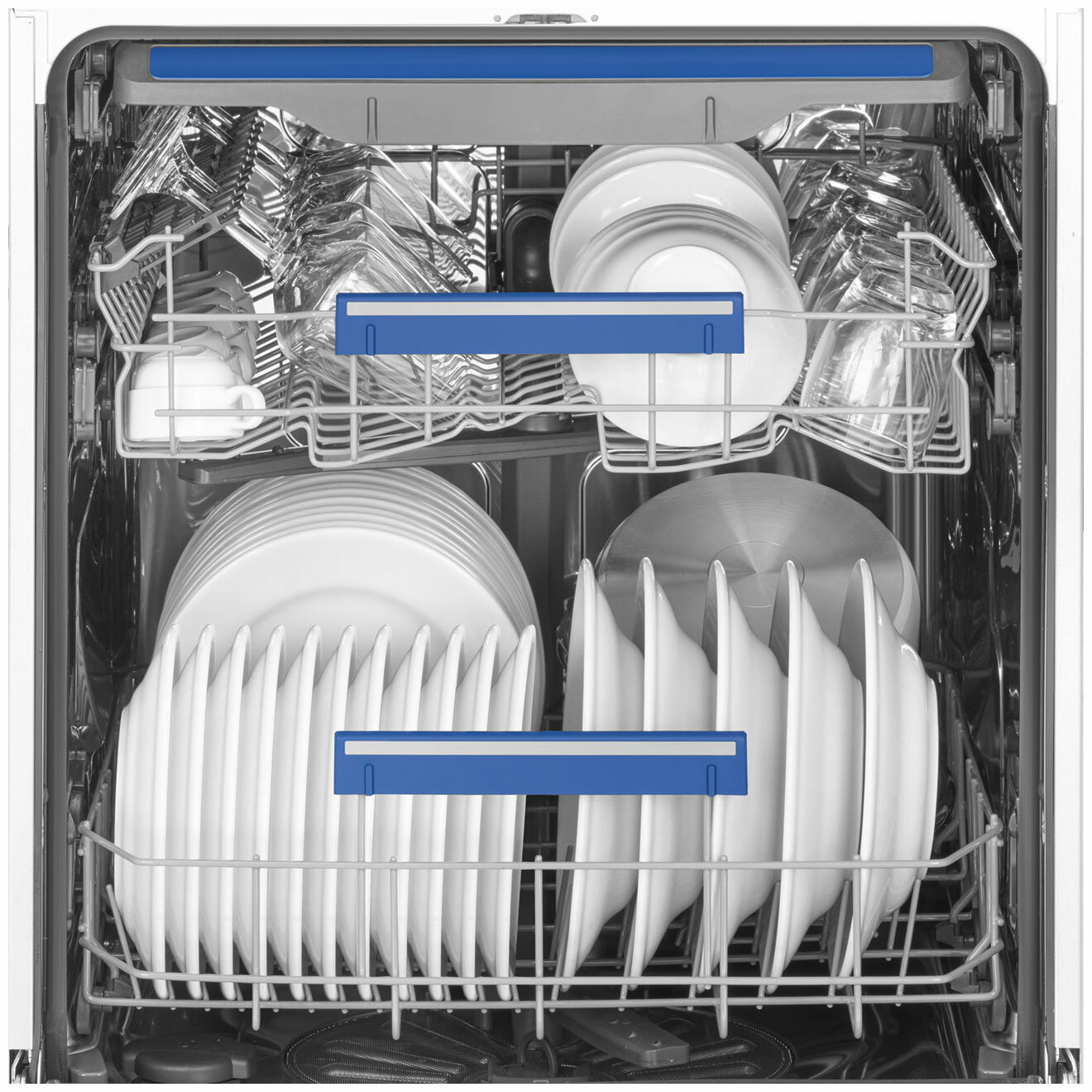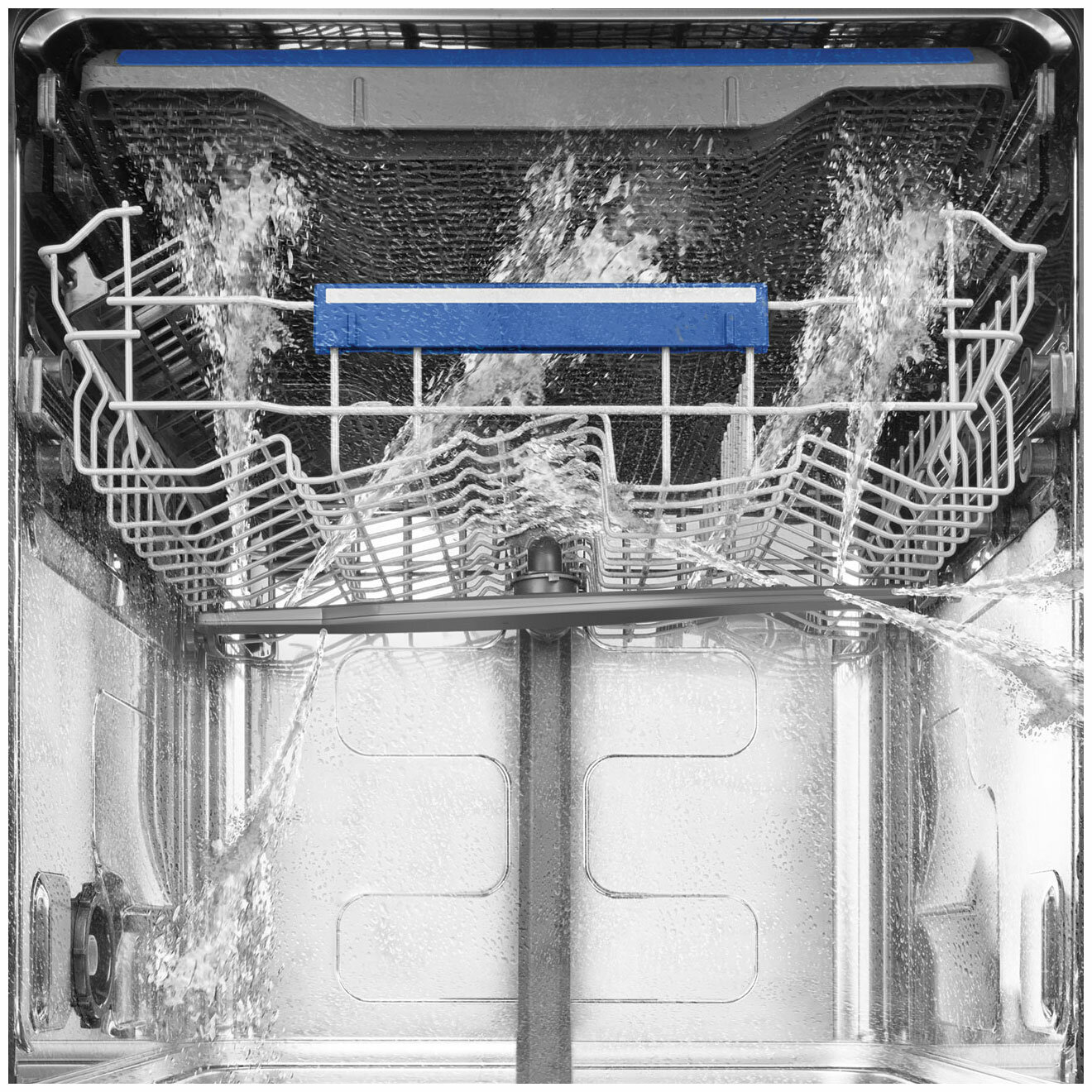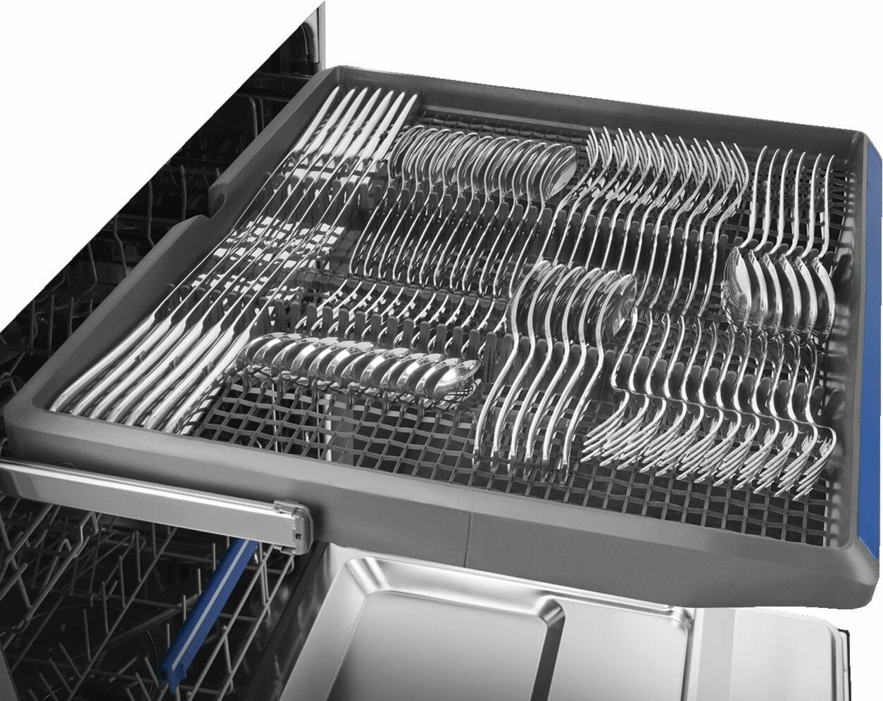 автоматическое открывание дверцы по завершении цикла, внутренняя поверхность из нержавеющей стали, дисплей, использование средств 3 в 1, регулируемая по высоте корзина для посуды, сенсор чистоты воды, таймер отсрочки, Звуковой сигнал, Отсрочка запуска, Поддон для столовых приборов, Половинная загрузка, Регулировка высоты корзин, Таймер