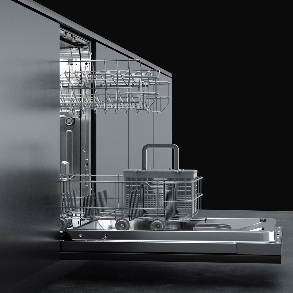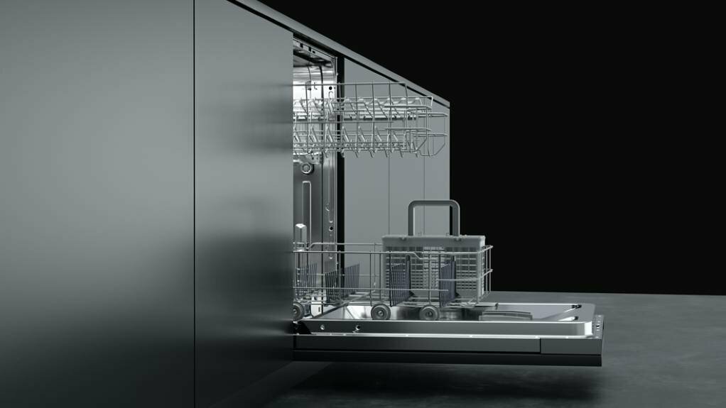 Благодаря технологии FlexiSet с откидывающимися элементами конструкции конфигурацию камеры возможно менять с учётом моющихся предметов. Все изделия оптимально размещаются, столовые приборы надёжно фиксируются, а для верхнего отсека предусмотрено три уровня положения.