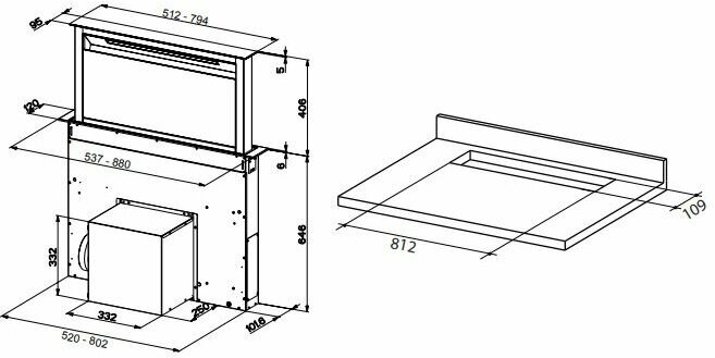 Корпус вытяжки в комплекте с устройствами управления, освещением, фильтрами, Двигатель, Электрооборудование, Передняя рамка, Установочные компоненты, Инструкция по эксплуатации