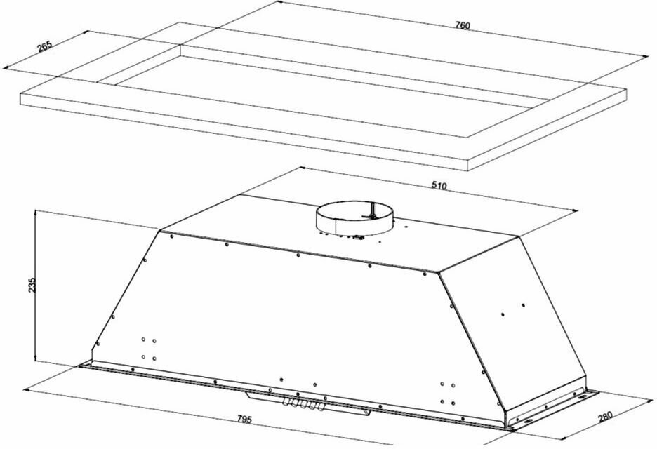 количество ламп освещения: 2; мощность лампы (Вт): 5; угольный фильтр: KIT 0277 (приобретается отдельно) 2шт.; длина шнура питания (м): 1.5; алюминиевые жировые фильтры