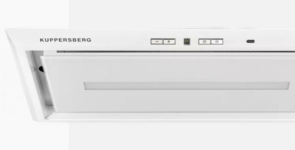 Встроенная вытяжка Kuppersberg INBOX 54 W белого цвета способна очистить кухню от курения и неприятных запахов за несколько минут.