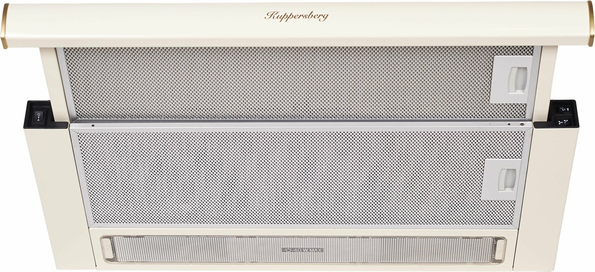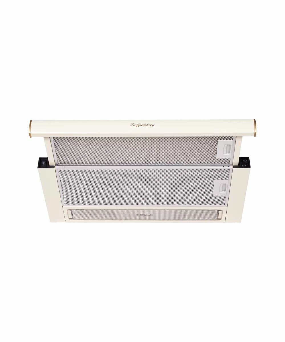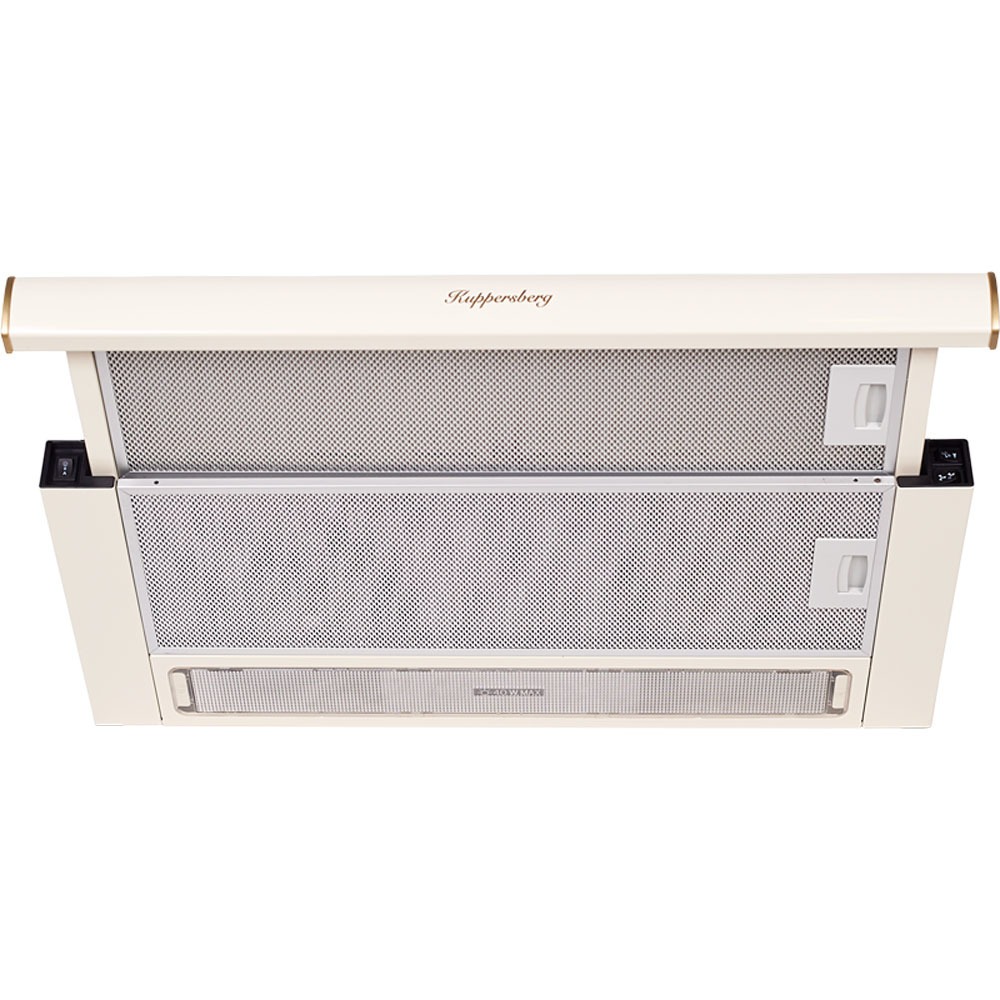 Встраиваемая вытяжка Kuppersberg Slimlux II 60 C бежевого цвета с механизмом выдвижения создаст некую изюминку в уютном интерьере маленькой кухни. Кроме того, он способен производить высококачественную рециркуляцию воздуха, нейтрализуя все вредные соединения в течение нескольких минут.