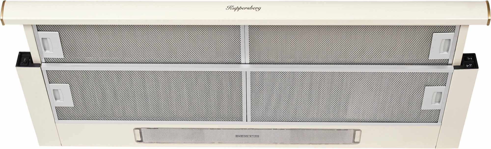 Вытяжка Kuppersberg SLIMLUX II 90 C шириной 90 см встраивается в навесной шкаф. Модель выполнена в светло-бежевом цвете, работает в режимах выхлопа и рециркуляции. Жироулавливающий фильтр можно мыть в посудомоечной машине. 2 лампы по 40 Вт служат дополнительным источником света на кухне.