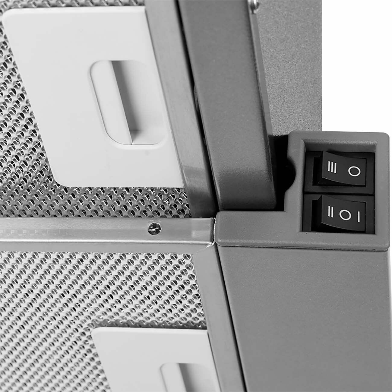 - Низкий уровень шума вытяжки