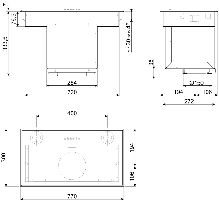 интенсивный режим, периметральное всасывание, регулировка яркости освещения, таймер, Защита от перегрева, Индикатор загрязненности фильтра, Периметрическая система всасывания воздуха