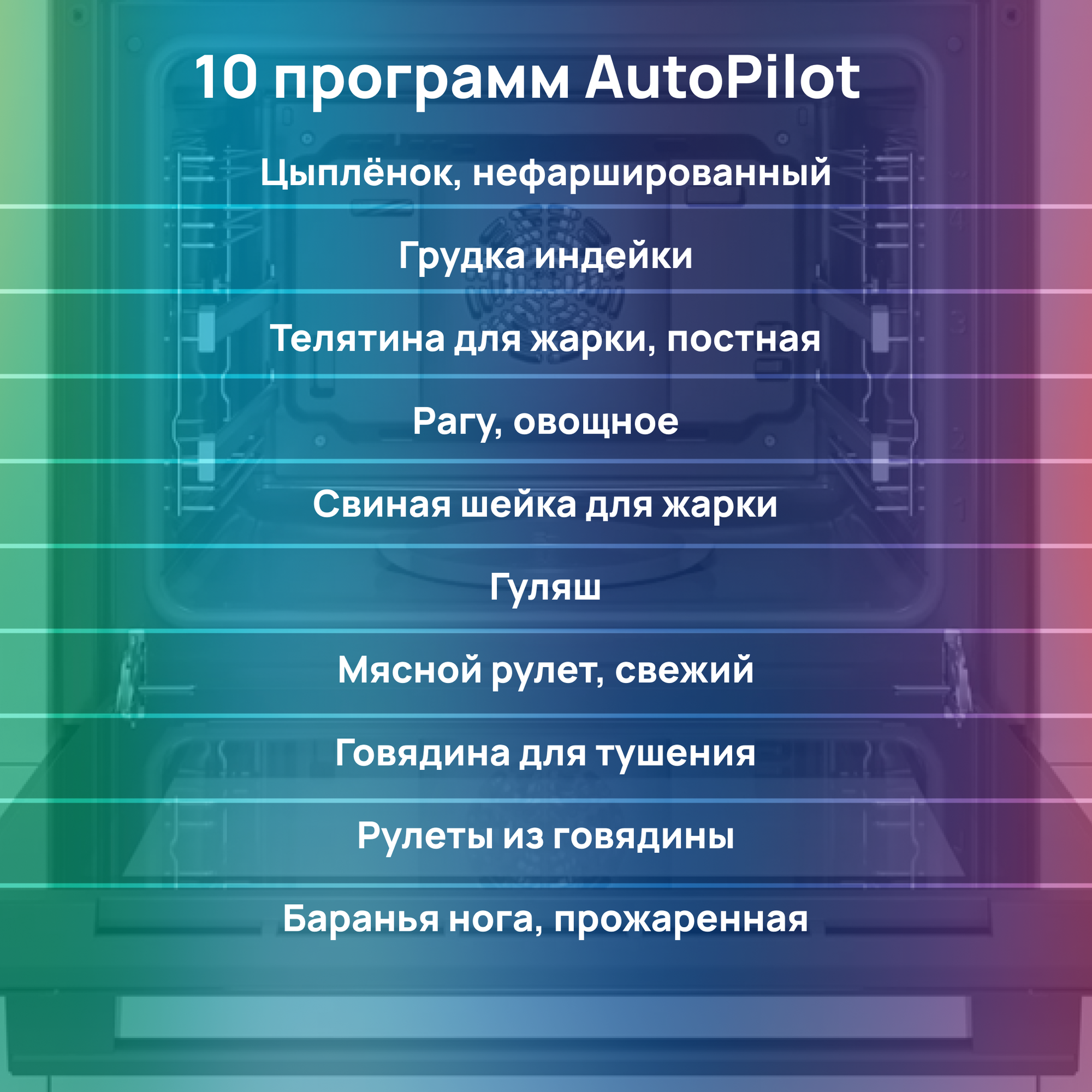 10 автоматических программ; дверца духовки с амортизатором