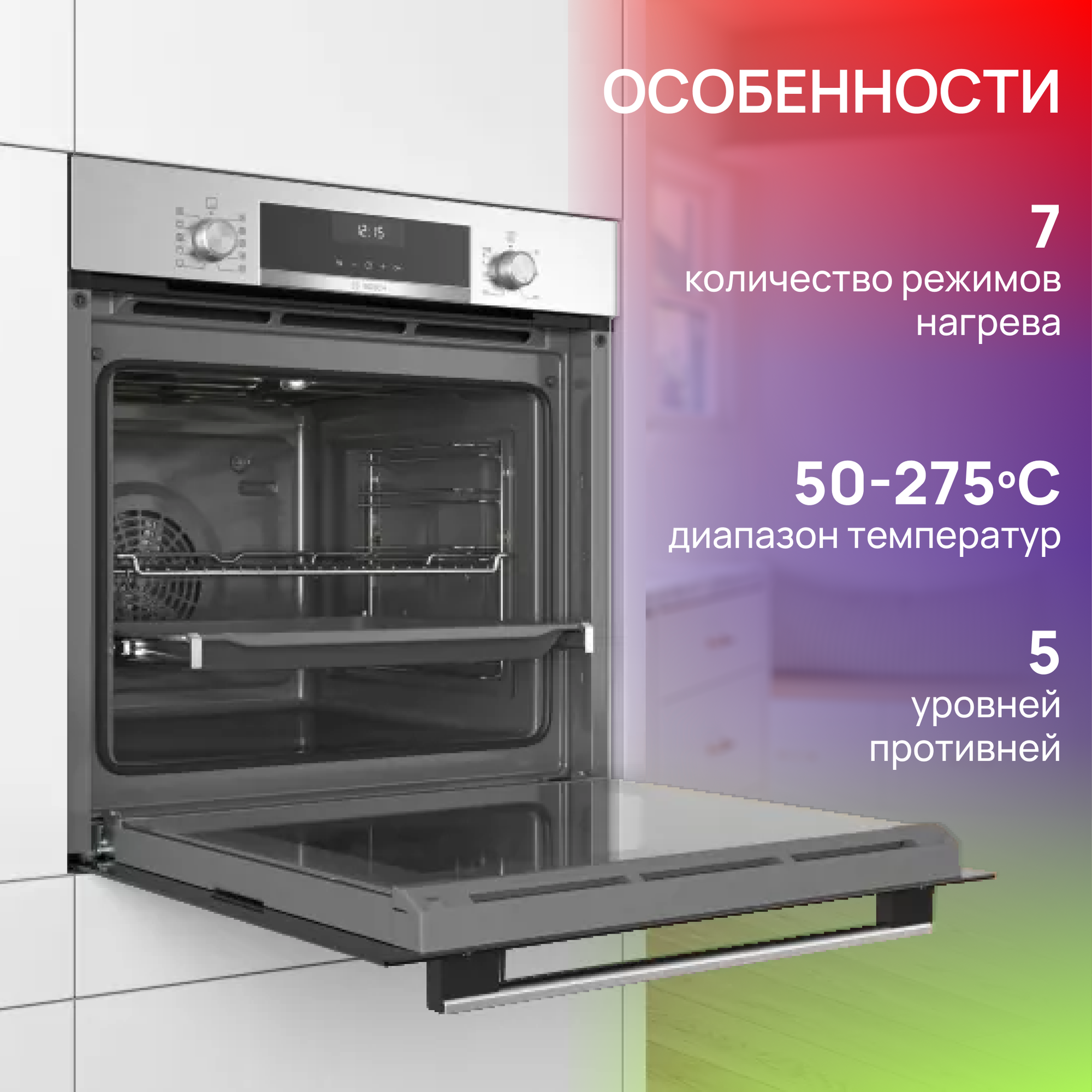 дисплей, подсветка камеры, телескопические направляющие, часы, эмаль легкой чистки, дисплей, подсветка камеры, телескопические направляющие, часы, эмаль легкой чистки
