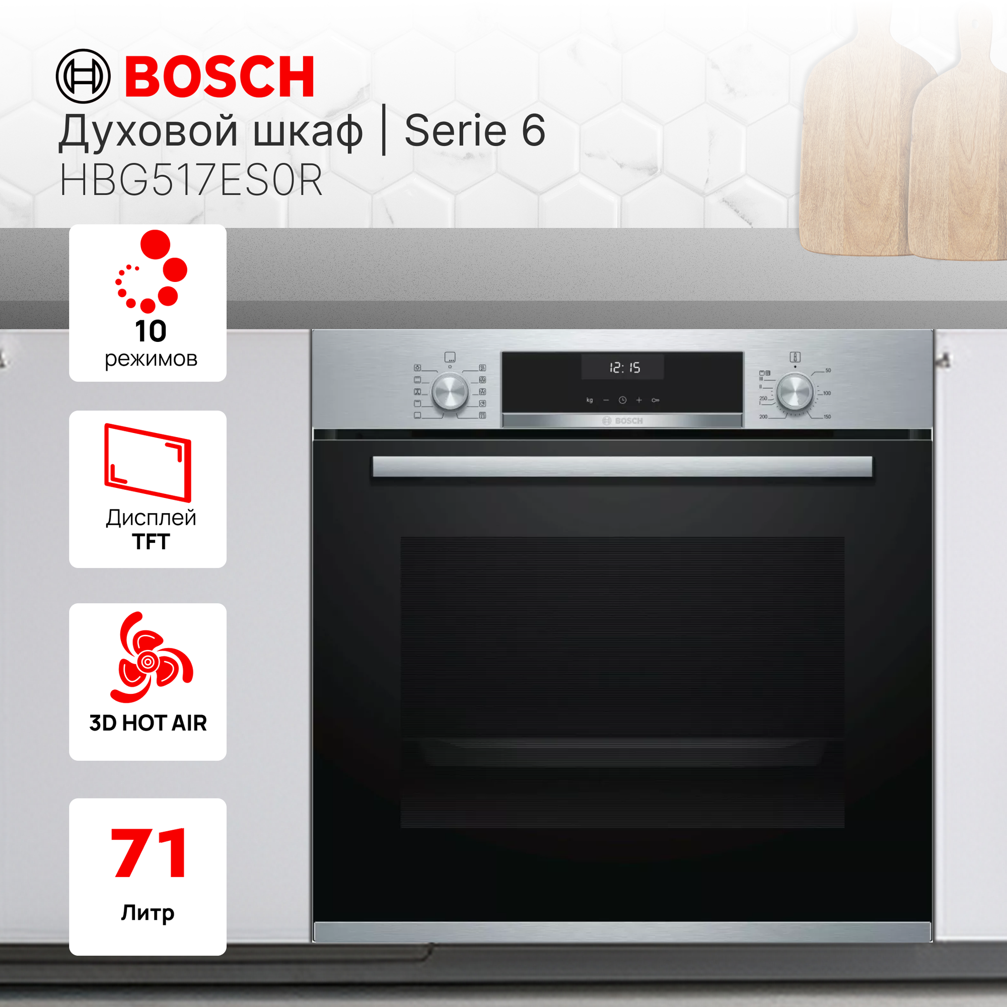 Встраиваемый духовой шкаф BOSCH HBG517ES0R