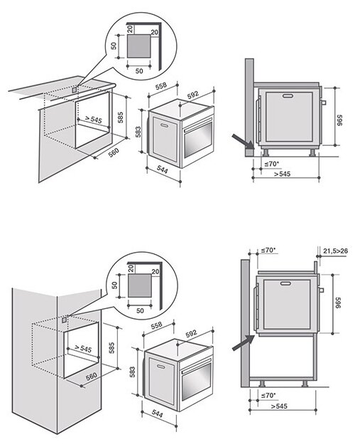 большой гриль, верхний нагрев, верхний нагрев + нижний нагрев, гриль + конвекция, конвекция, нижний нагрев, нижний нагрев + конвекция