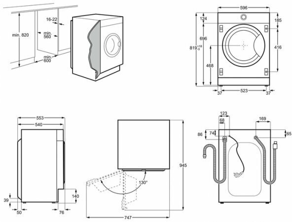 электронные часы; вентилятор охлаждения; два вентилятора Dual Fan; система плавного закрытия дверцы; электронный звуковой таймер с отключением, размер ниши для встраивания (ШxВxГ) 560x572x549 мм, вес без упаковки - 34,7 кг