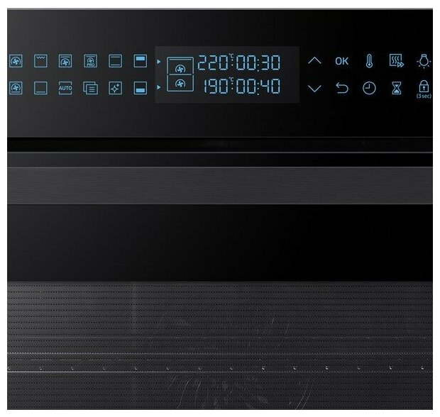 большой гриль, верхний нагрев, верхний нагрев + конвекция, верхний нагрев + нижний нагрев, конвекция, нижний нагрев, нижний нагрев + конвекция