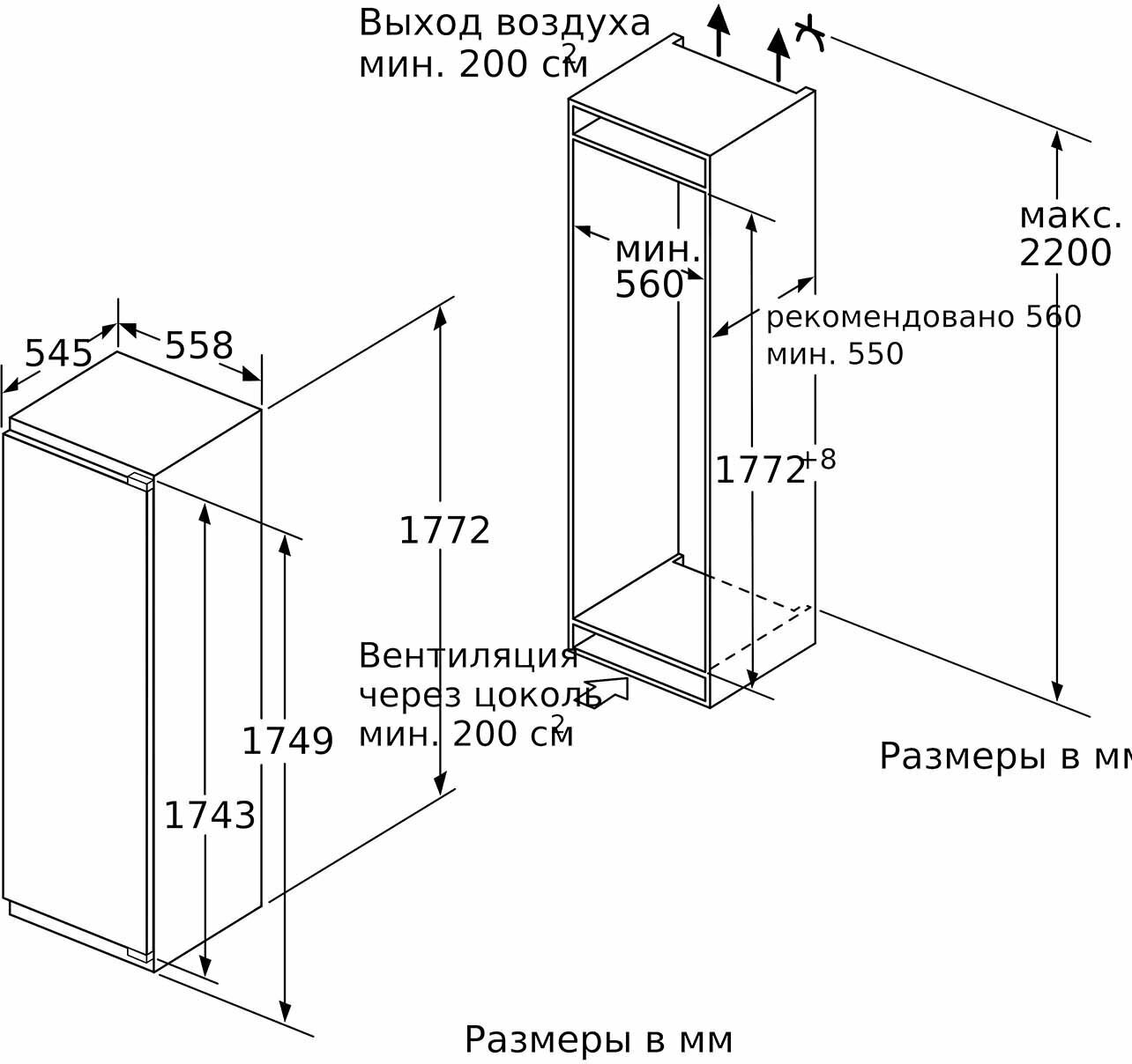 Расположение морозильной камеры