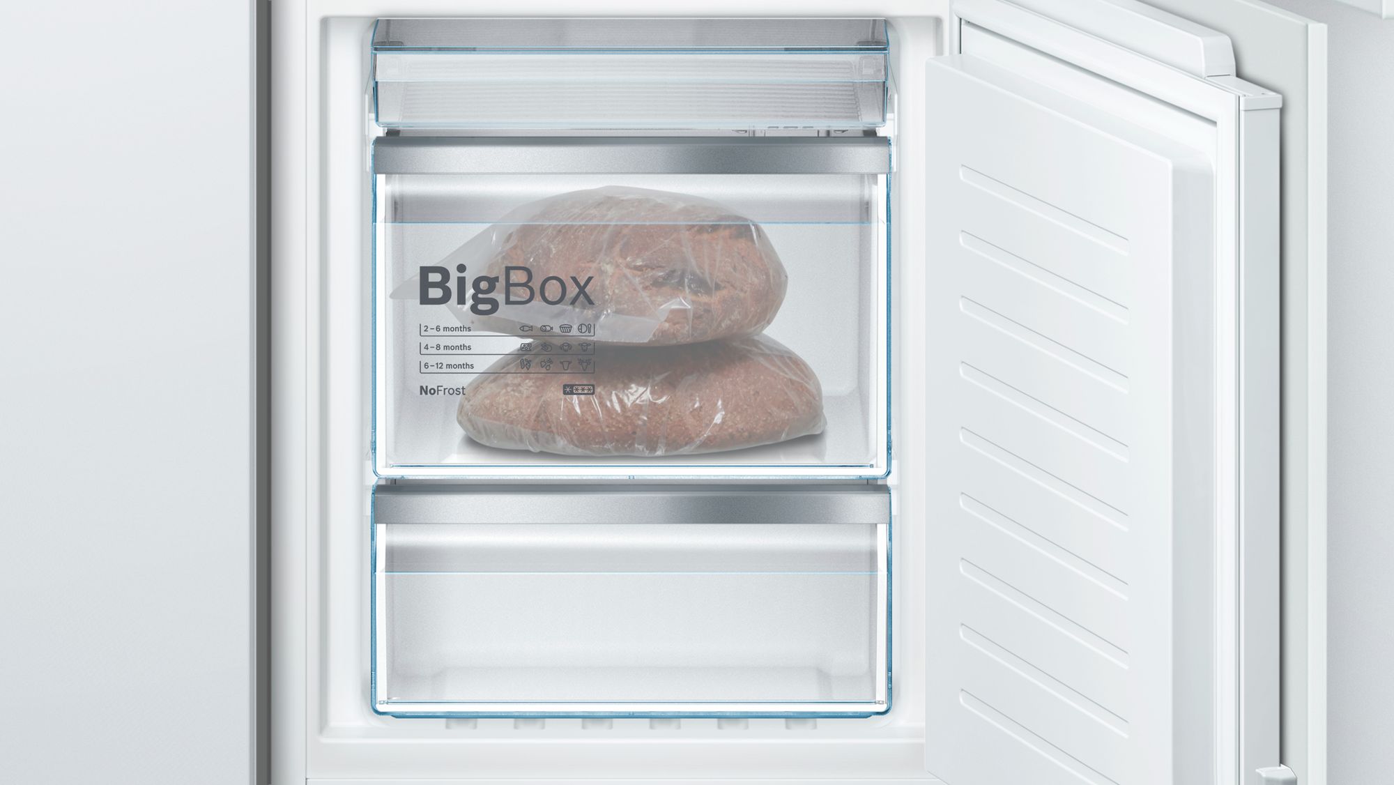 Морозильная камера очень вместительная. Крайне удобные отсеки BigBox.