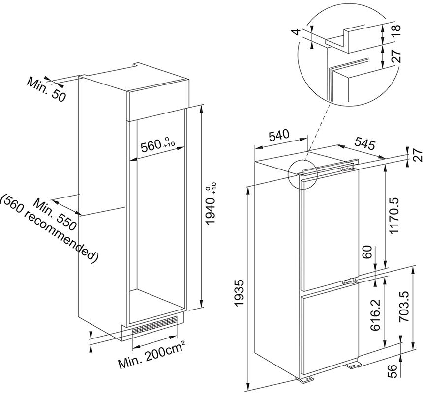 Встраиваемый холодильник Franke FCB 360 NF NE F 118.0627.477