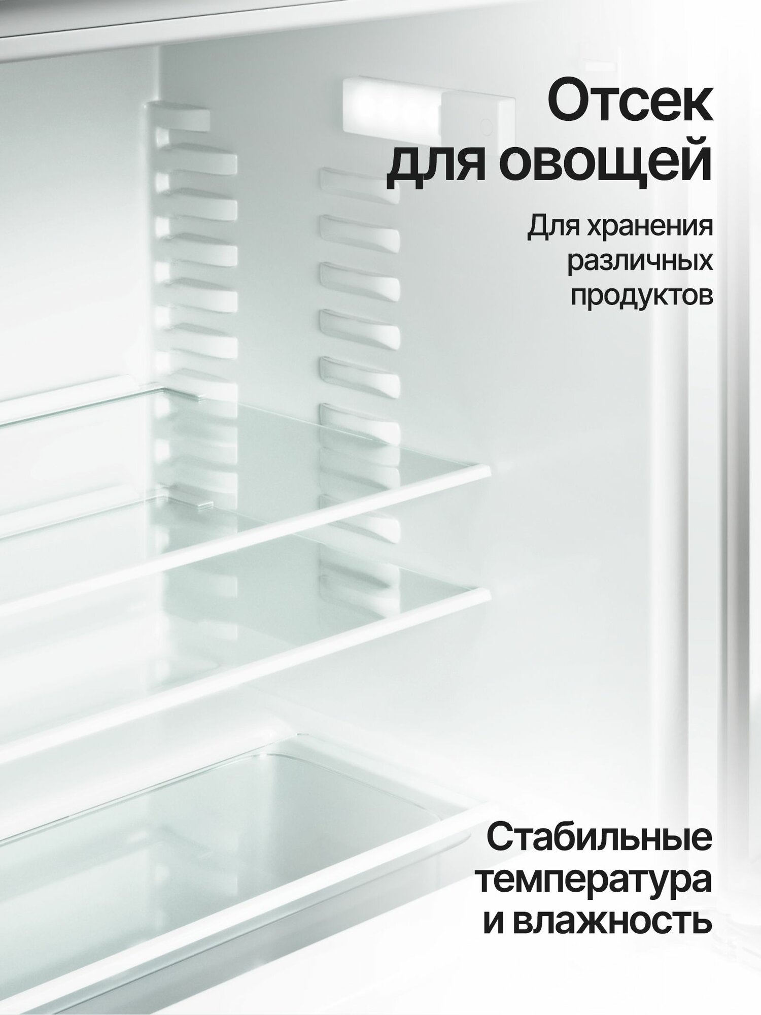 Отсек для овощей -1, Полка для яиц , Количество полок- 2, Количество регулируемых полок -1, Количество полок на двери -3