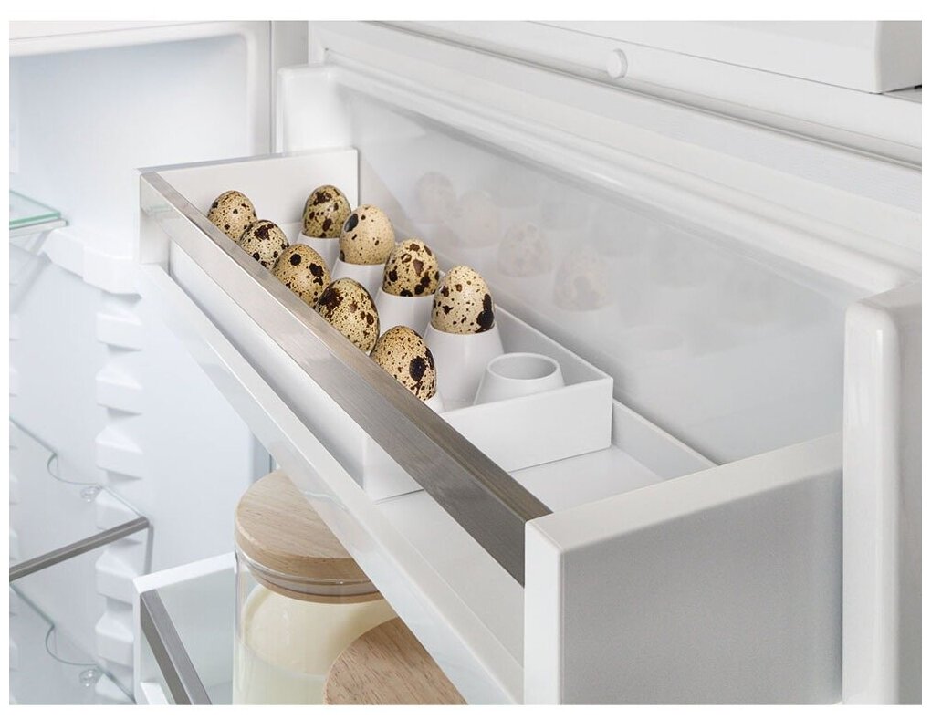 2 Выравнивающие планки Одна разделяемая полка Одна стеклянная панель в морозильном отделении Лоток для яиц 10 яиц Хранение бутылок - полка для 3 бутылок