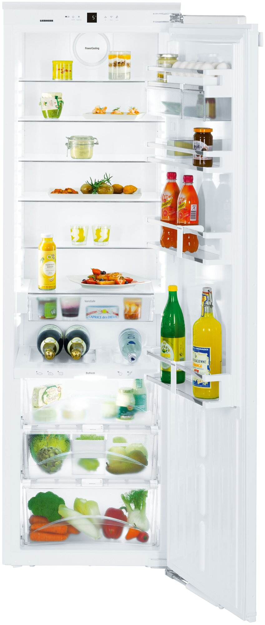 регулятор влажности DrySafe/HydroSafe; регулируемый диапазон температур холодильного отделения: от +3 °C до +9 °C; количество полок в холодильной камере: 8; светодиодное освещение зоны свежести