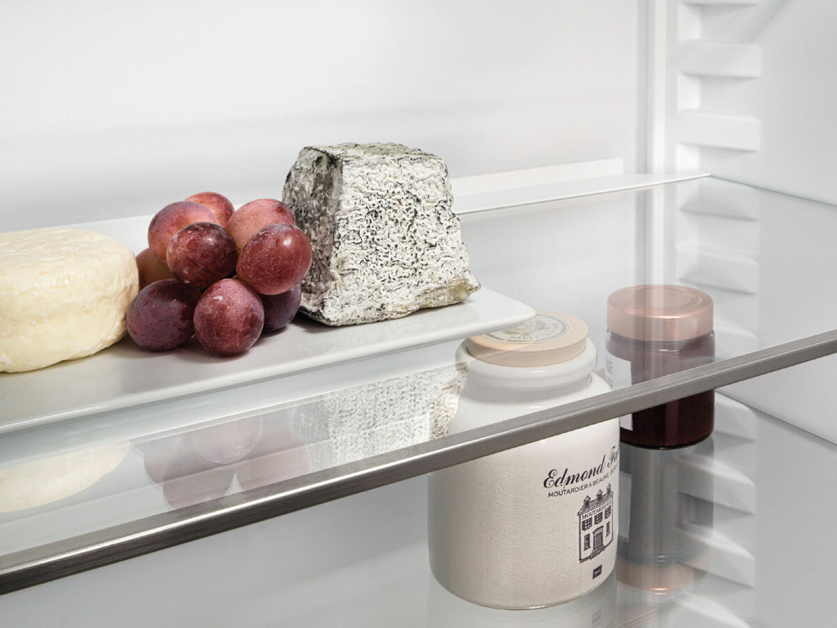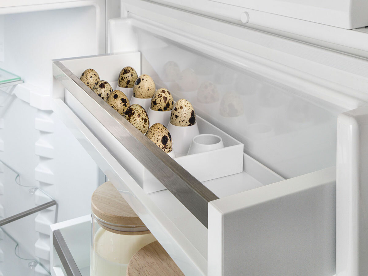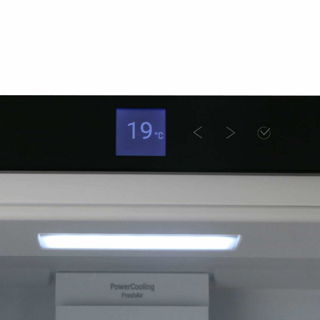 Сенсорное управление; Индикация включения; Светодиодное освещение; Регулировка температуры в зоне сохранения свежести; Подставка для яиц 1 x 10 шт; Открывание дверей вправо; Встроенный вентилятор для распределения температуры; Полка для бутылок; Место для размещения противня