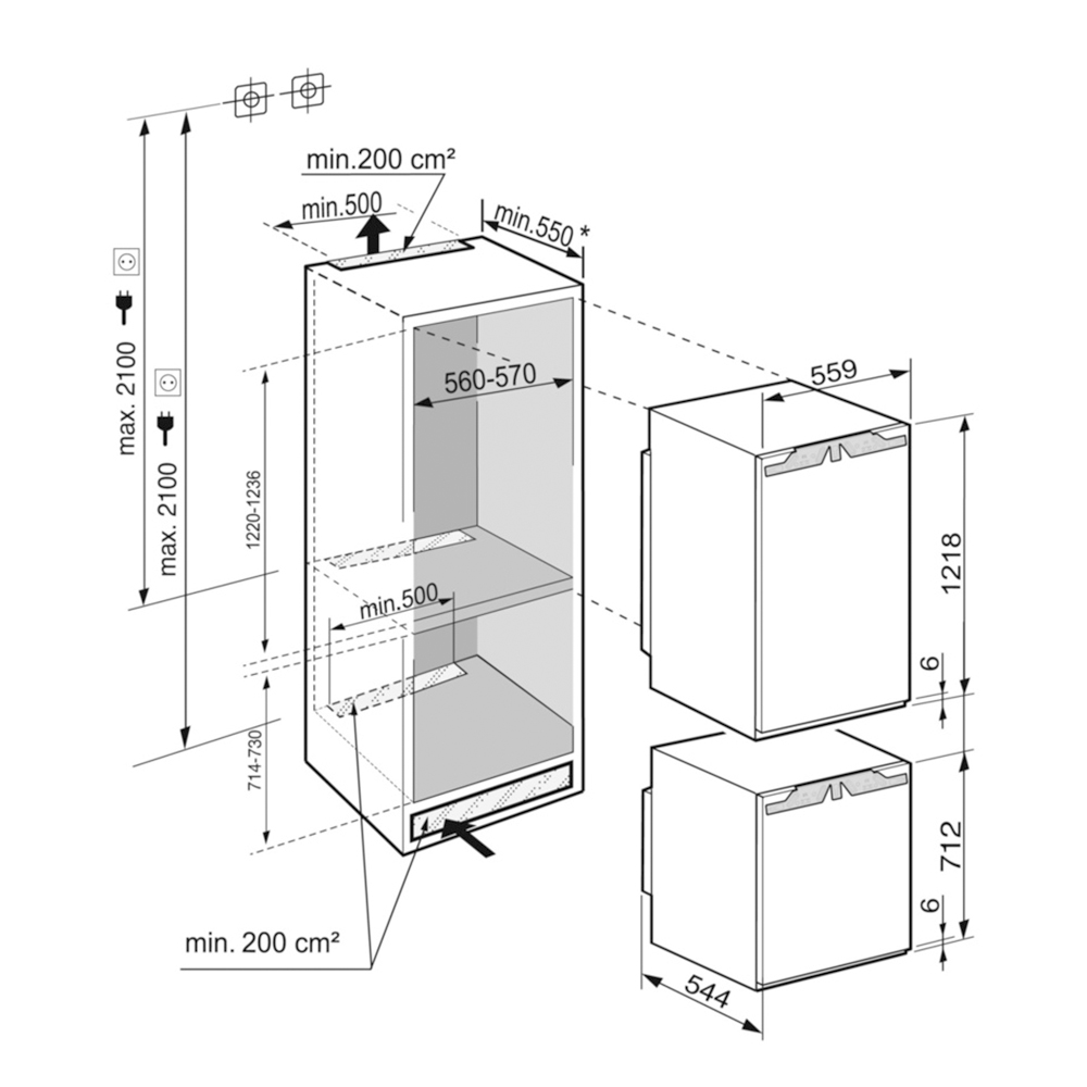 комбинация из моделей IK 2320 и IG 1024; требуется установка фиксированной мебельной перегородки между холодильной и морозильной камерами