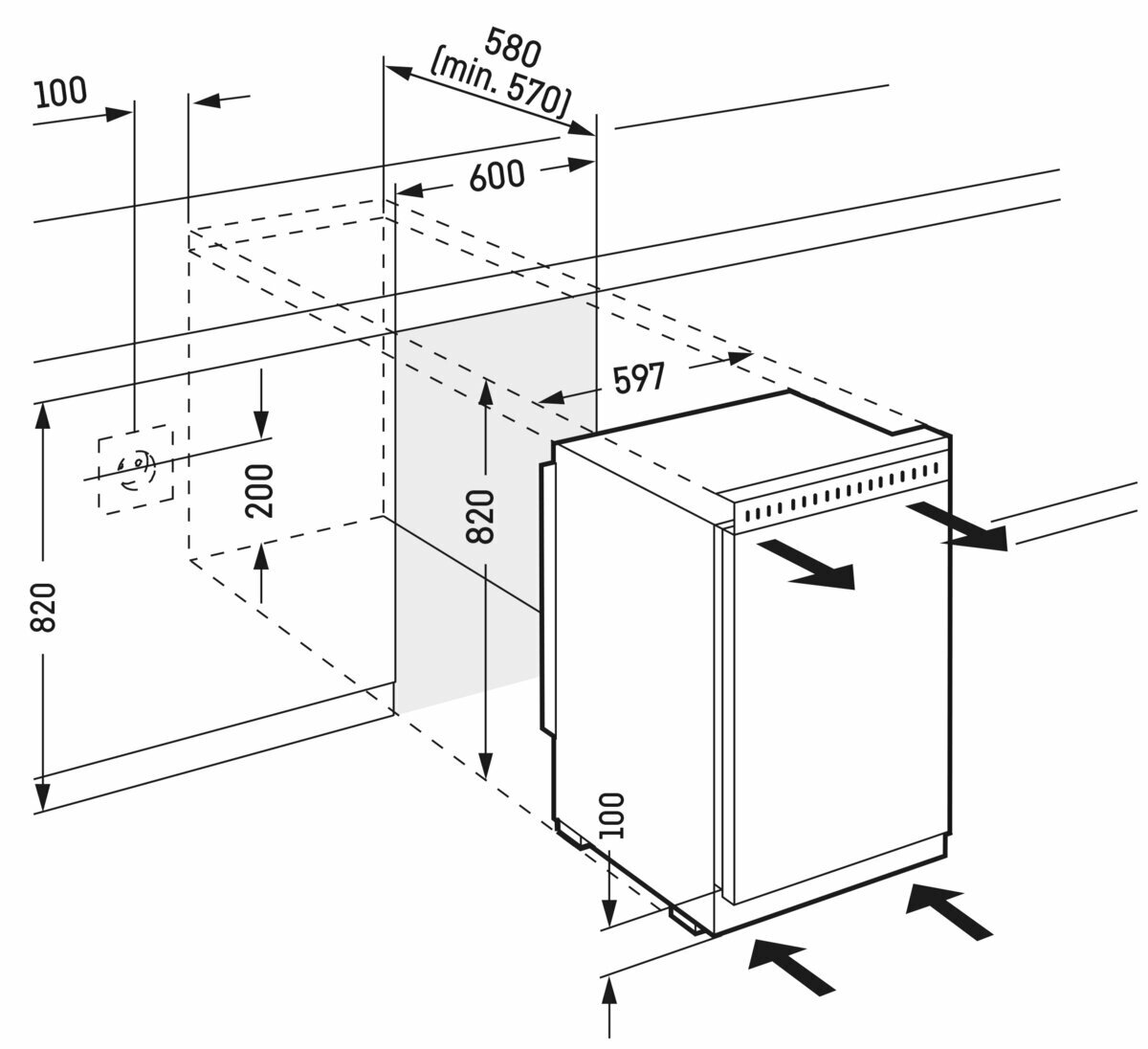 Холодильник для встраивания под столешницу