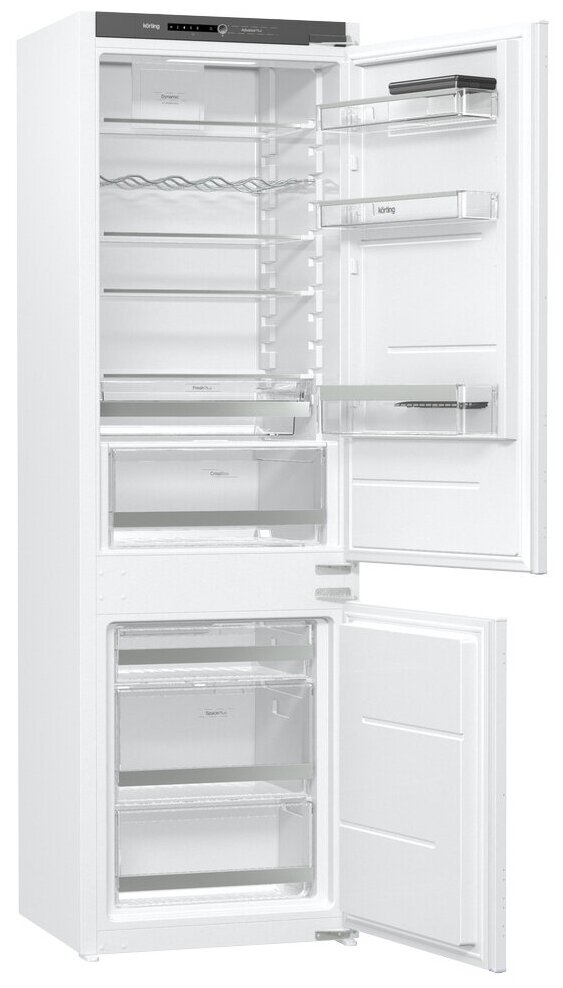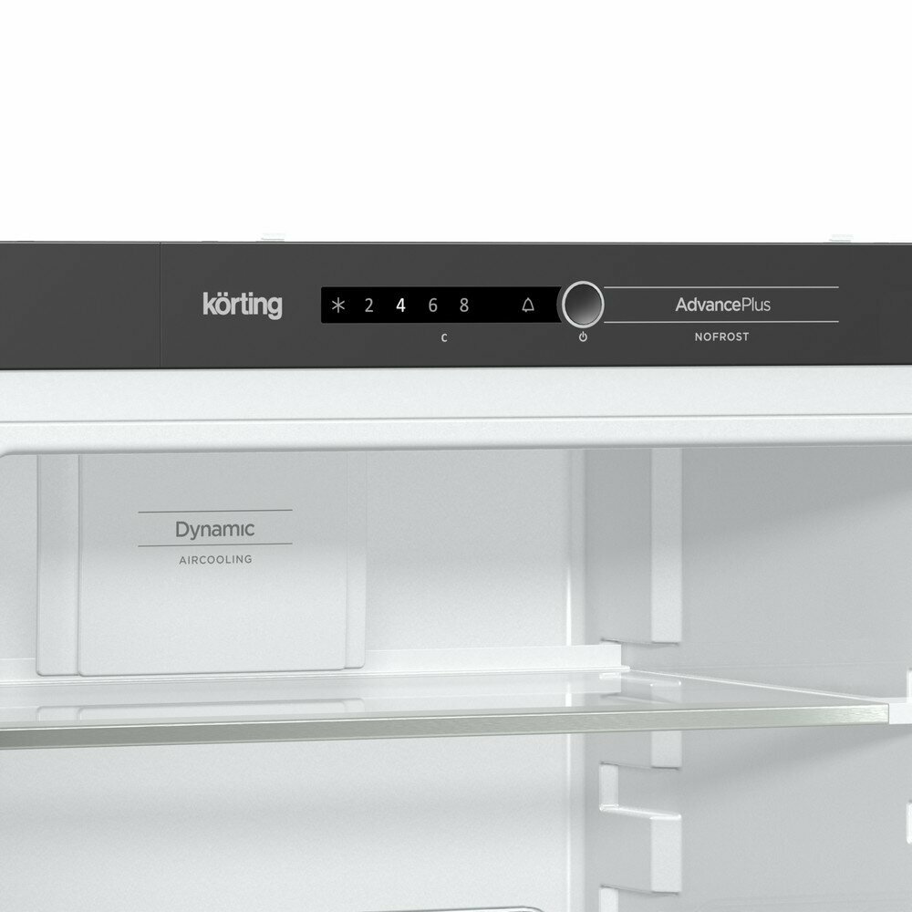 подсветка LED; адаптивное управление AdvancePlus с дисплеем, динамическая система охлаждения холодильной камеры DYNAMIC AIR COOLING, большой ящик для овощей CrispBox с регулировкой влажности, дополнительное пространство Man Cave, технология FrostLess для снижения образования инея на 50%; крепление фасада слайдерное; на двери 1 полка с крышкой, 2 полки, 1 полка с держателями; 5 полок из закалённого стекла в холодильном отделении; 2 стеклянные полки морозильного отделения - ящики скользят плавно и бесшумно; скользящее крепление двери