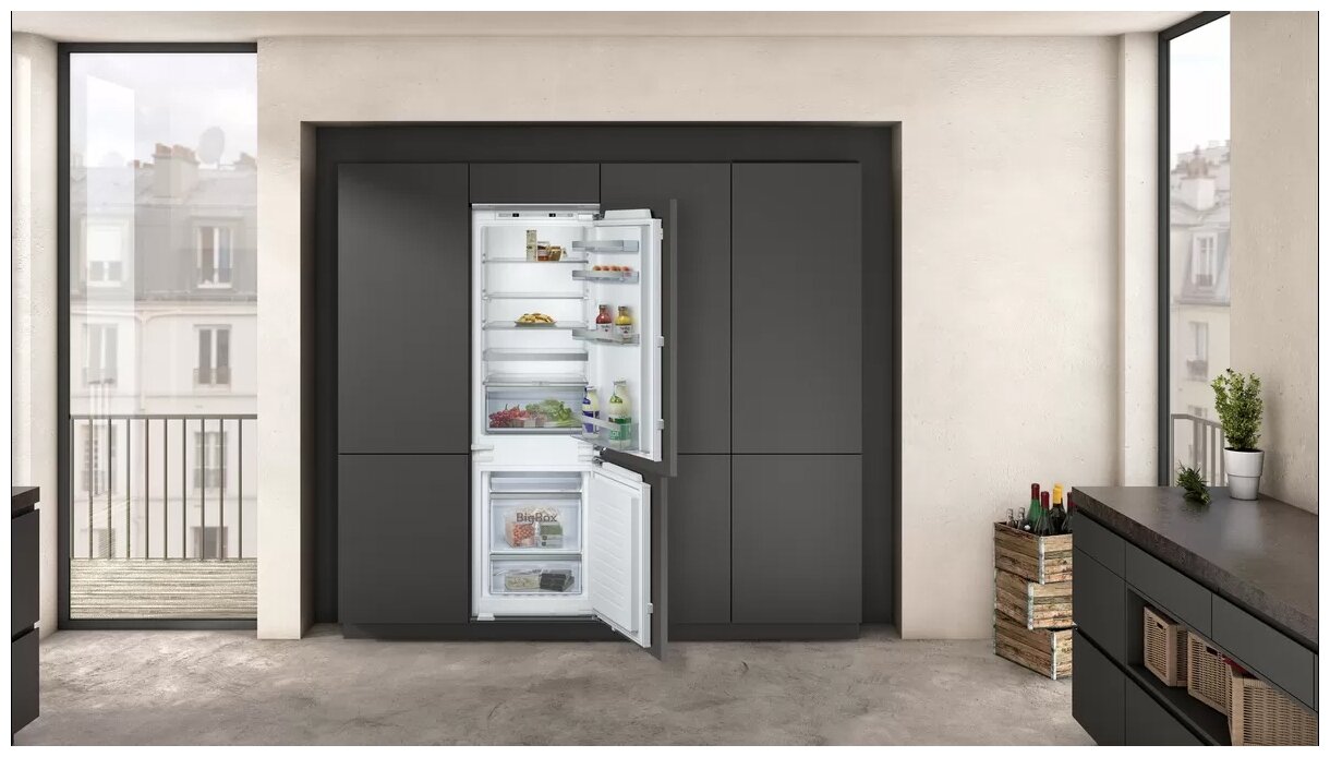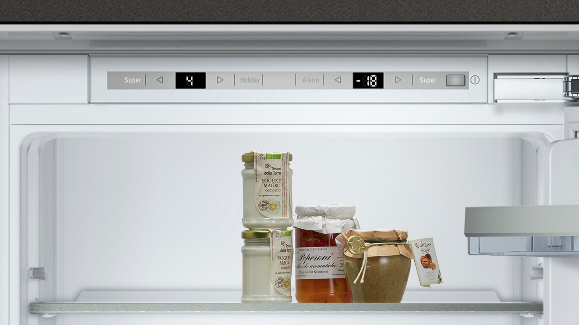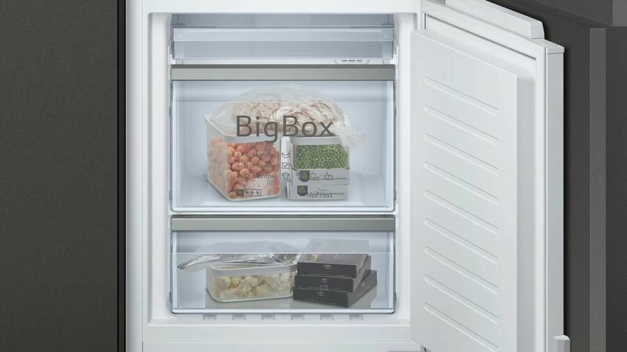 Часто сталкиваетесь с проблемой оптимального размещения продуктов в холодильнике? Конструкция модели Neff KI7863D20R продумана таким образом, что рабочее пространство трансформируется: вы можете моделировать его конфигурацию и хранить всё, что угодно. Полки очень легко перемещаются по уровням и регулируются по высоте: даже самая крупногабаритная посуда легко уместится в камере. В морозильной камере есть специальный увеличенный ящик BigBox, в котором точно уместится всё то, что вы хотите заморозить. Больше не думайте о размерах.