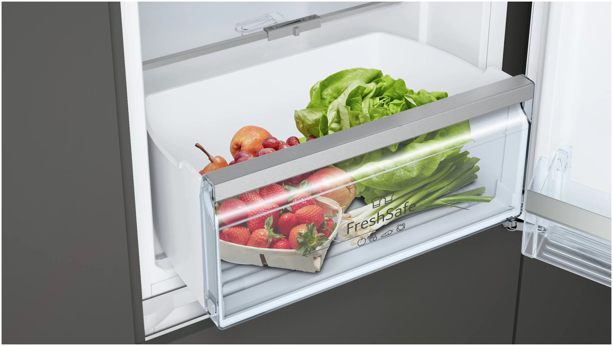 Фруктам, ягодам и овощам нужны особые условия, и идеальная среда поддерживается в холодильной камере модели Neff KI7863D20R. Технология FreshSafe позволяет создавать и сохранять оптимальный уровень влажности, чтобы продукты оставались свежими, вкусными и полезными.