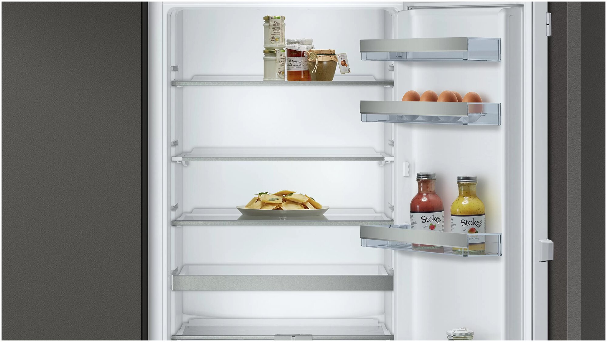 В холодильнике Neff KI7863D20R предусмотрена система NoFrost. На стенках холодильной и морозильной камер не образуется наледь.