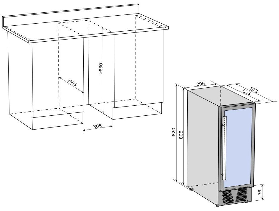 Материал полок: Массив бука Материал корпуса: Металл Индикаторы: Температура, Вентилятор Цвет подсветки: Белый Цвет стекла: Дымчатый Память настроек Петли: Внутренние