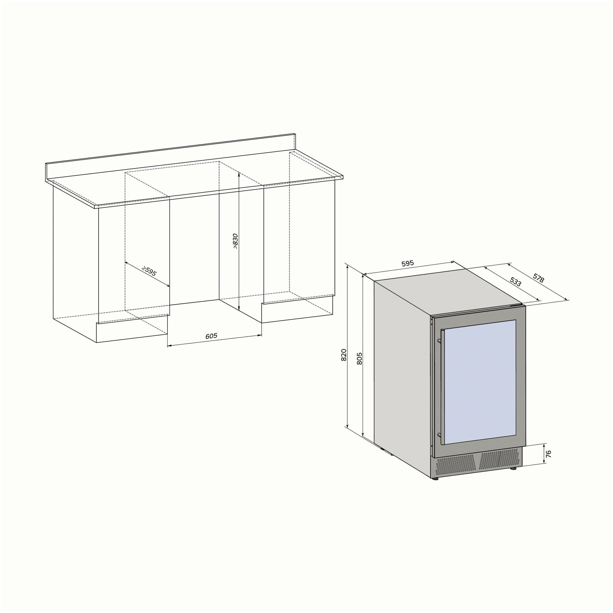 встраиваемый; комплектация - винный шкаф, инструкция, крепеж для ручки, полки из массива бука, ручка, угольный фильтр