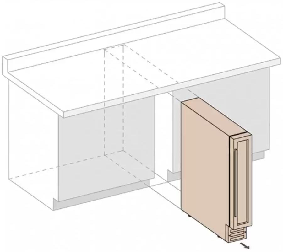 динамическое охлаждение Динамическое охлаждение Динамическая (или вентиляционная) система охлаждения обеспечивает равномерное распределение воздуха вкамере. Благодаря этому нанужном уровне поддерживается нетолько температура, ноивлажность. регулируемые ножки Регулируемые ножки Регулируемые ножки— опция, которой оснащаются винные шкафы любого типа: частично иполностью встраиваемые иотдельно стоящие. Холодильники могут иметь четыре или две ножки изменяемой высоты, которые служат как для выравнивания прибора при установке, так идля изменения его высоты, что особенно важно при частичном встраивании внишу или под столешницу. Для изменения высоты ножку достаточно вывинтить, регулировка может быть как плавной, так инанескольких фиксированных уровнях. Диапазон изменения размера зависит отмодели: максимальное его значение может достигать 7см, аминимальное— 2см.