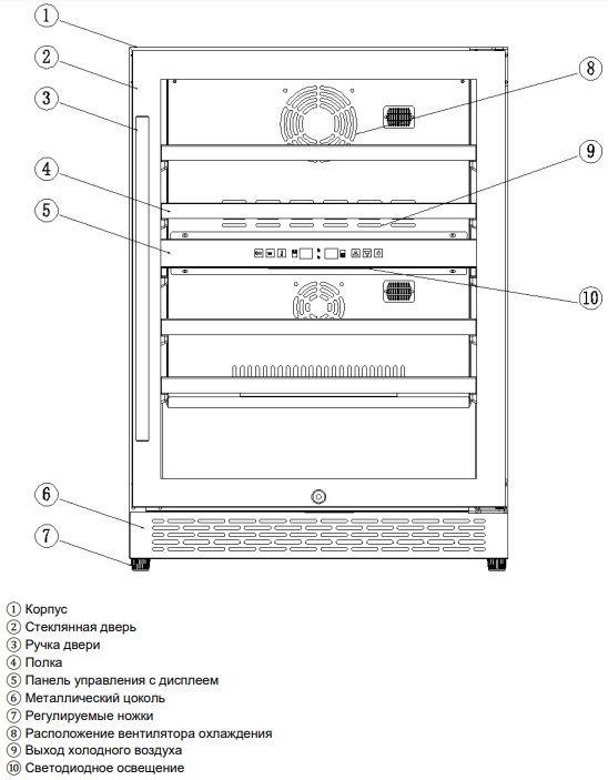 Тип встраивания: под столешницу Индикация температуры Деревянные полки: бук