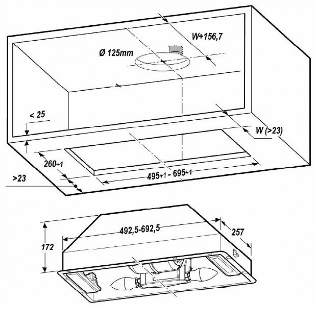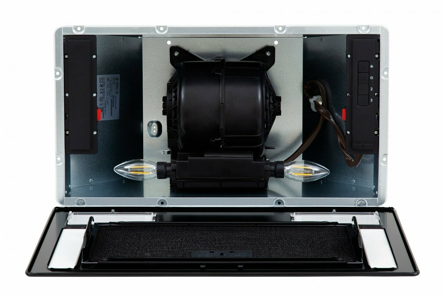 жиропоглощающий фильтр алюминиевый; класс энергоэффективности D; цветовая температура 2700 К; расстояние до газовой варочной поверхности 65 см; расстояние до электрической варочной поверхности 60 см; сетевой кабель без вилки; оборудование для работы в режиме рециркуляции приобретается отдельно, тип угольного фильтра: CFC0141571