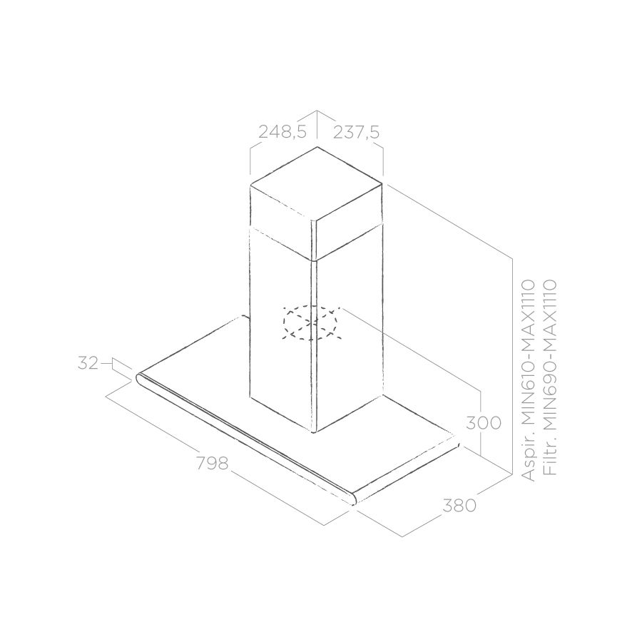 минимальный уровень шума 46 дБ, угольный фильтр продается отдельно; количество ламп освещения: 2; мощность каждой лампы: 20 Вт