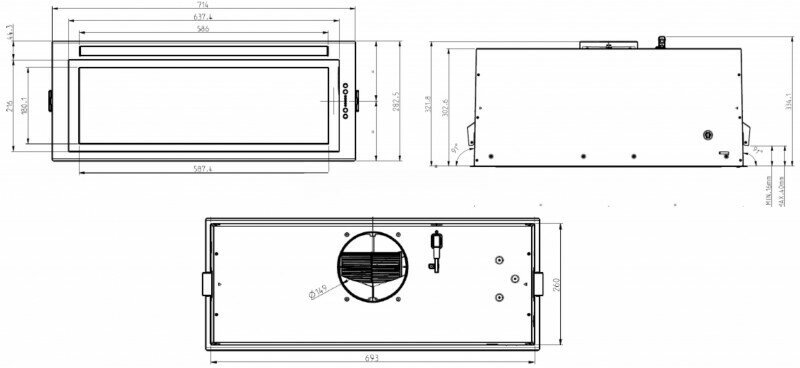 Комплектация : Инструкция по монтажу и эксплуатации, монтажный комплект, сетевой кабель без вилки (находится внутри вытяжки)