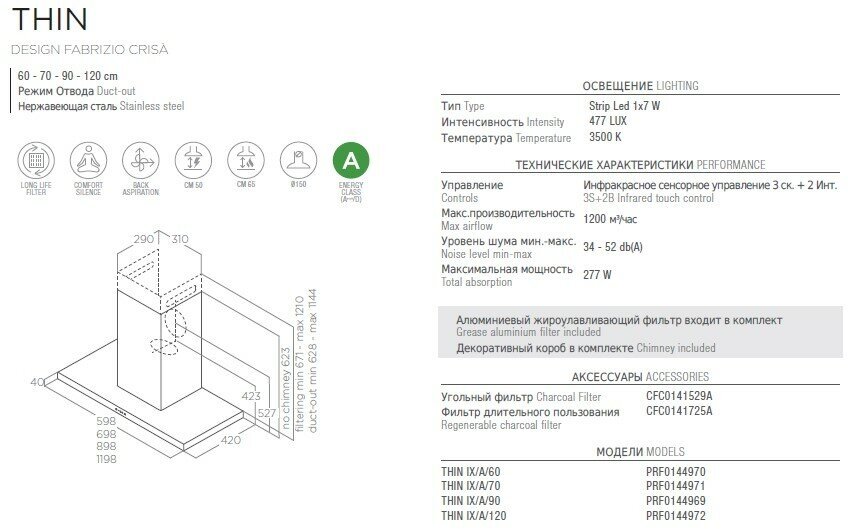 Вытяжка ELICA THIN IX/A/60 (PRF0144970), инструкция - 1 штука