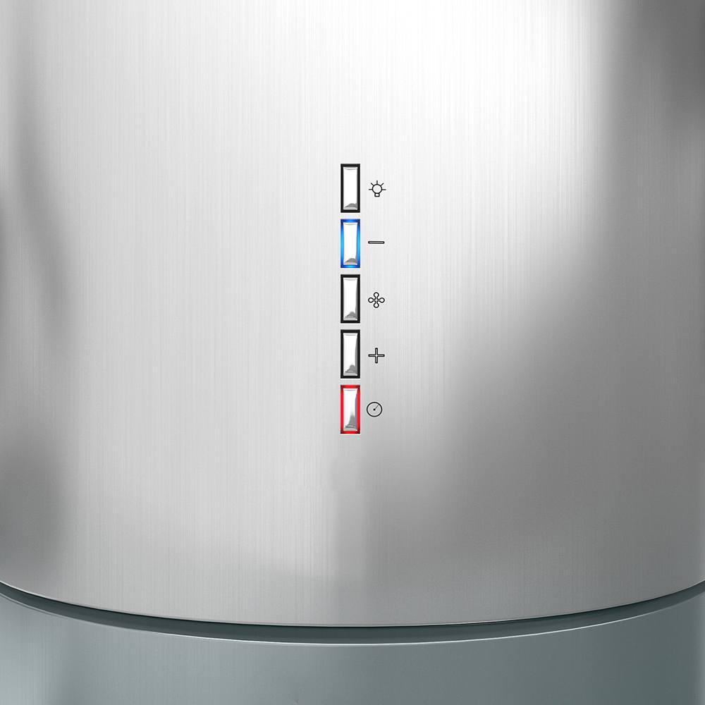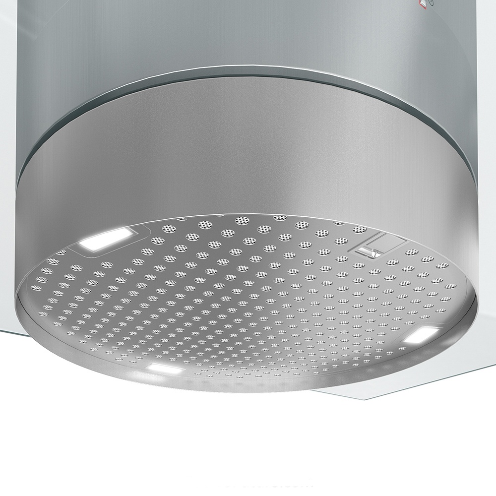 Дизайн. Островная вытяжка Falmec Design POLAR isola 35 inox (800) изготовлена из нержавеющей стали AISI 304. Отделка Scotch Brite подчеркивает цилиндрическую форму модели. Электронные кнопки управления расположены на корпусе.