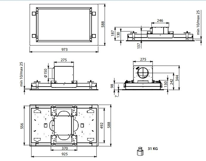Мотор - выбирается отдельно в зависимости от типа установки (на вытяжку, удалённо):. KACL.782#49F (800 м³/ч) - Slim версия, плоский мотор для установки с минимальной высотой встраивания.. KACL.798#41F (950 м³/ч) - мотор может быть установлен в верхней части изделия или в удаленном месте. . KACL.770#41F (1100 м³/ч) - в удаленном месте под крышей, бесщеточный. KACL.786#41F (1000 м³/ч) - монтаж мотора на улице.. KACL.796#4AF (1500 м³/ч) - монтаж мотора на улице.. . Комплект KACL.939#BF для функции рециркуляции