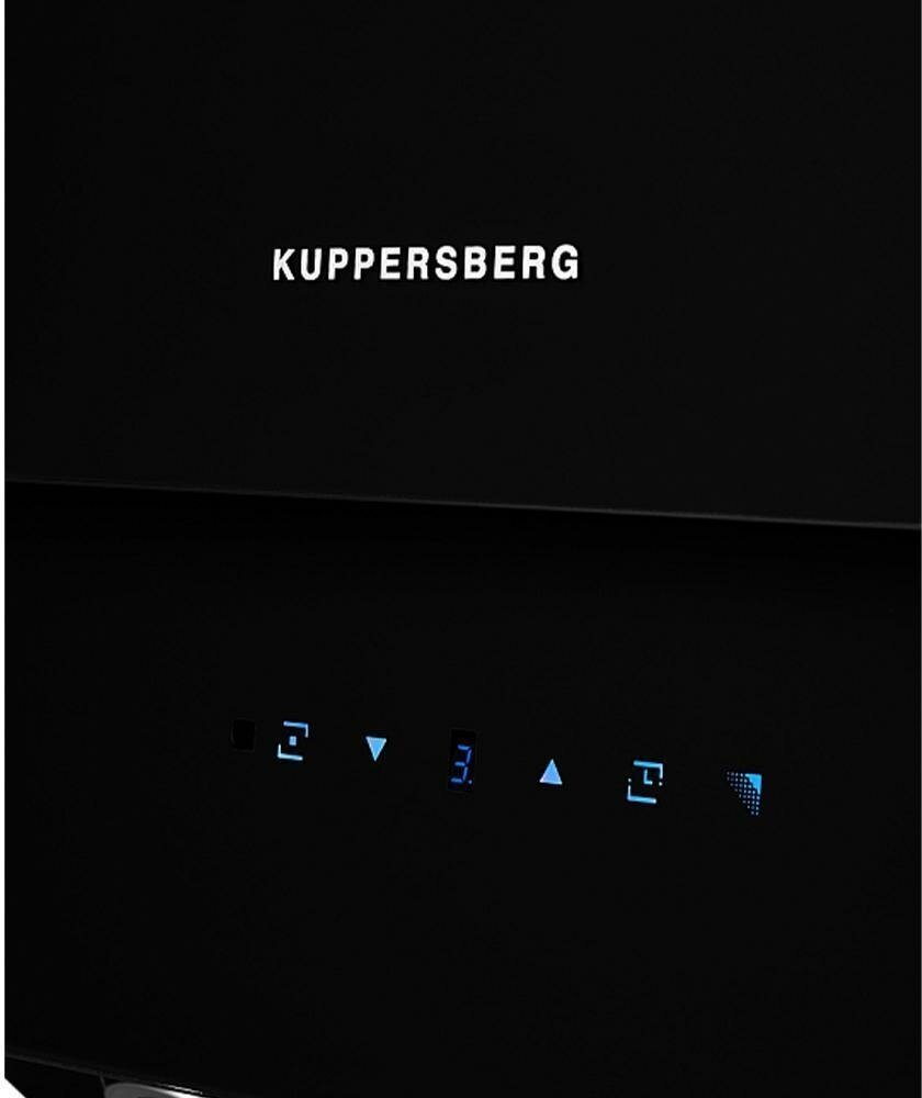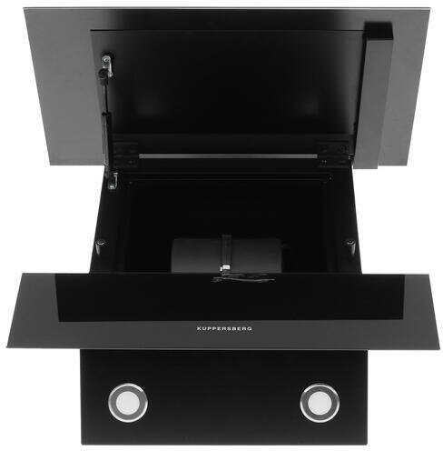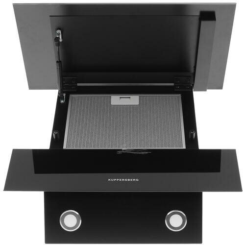 Элегантная наклонная встраиваемая вытяжка Kuppersberg F 612 B черного цвета способна быстро избавить кухонную зону от копоти и неприятных запахов пригоревших продуктов.