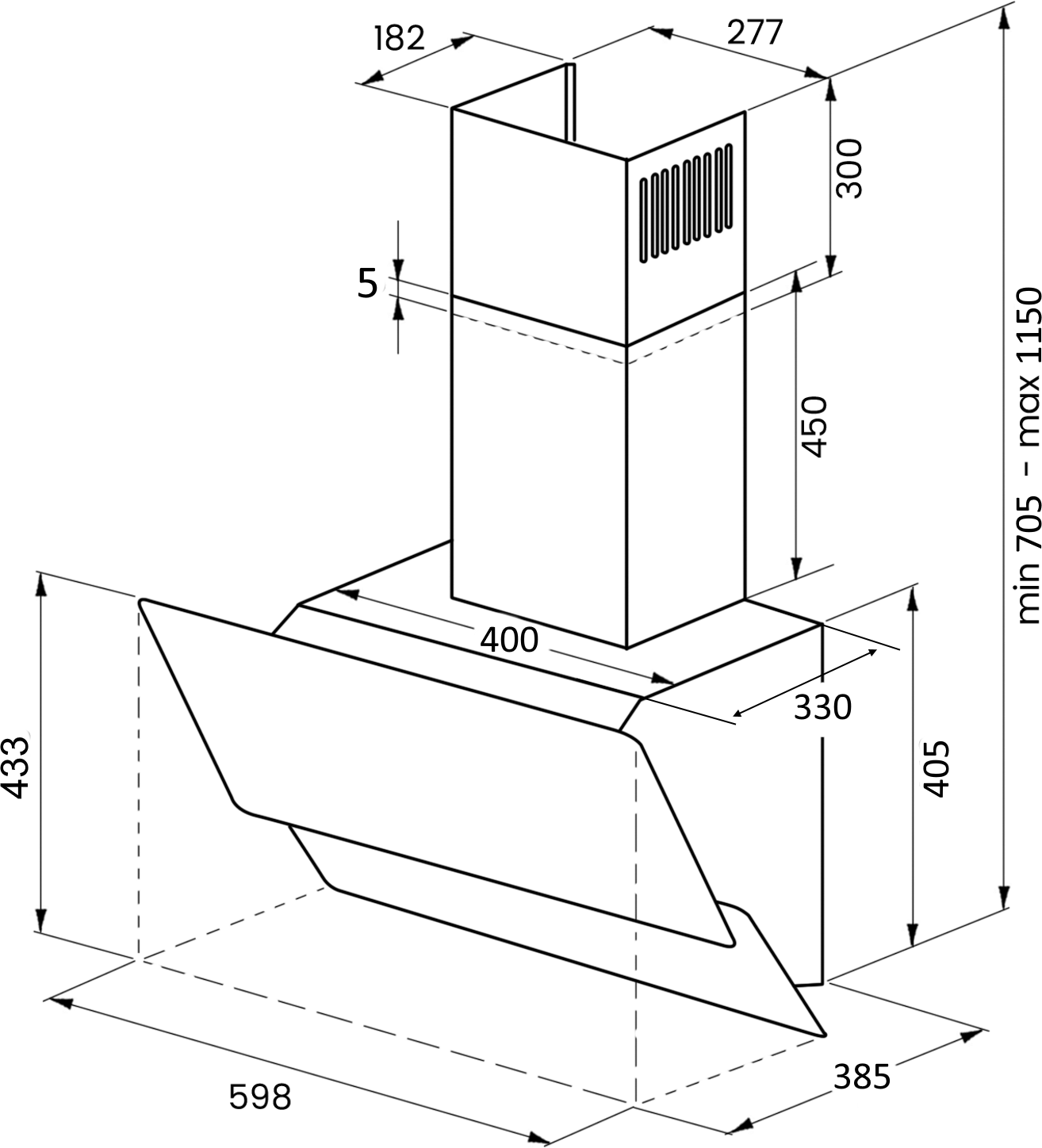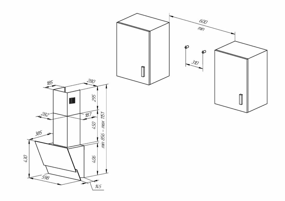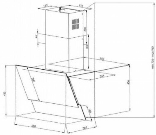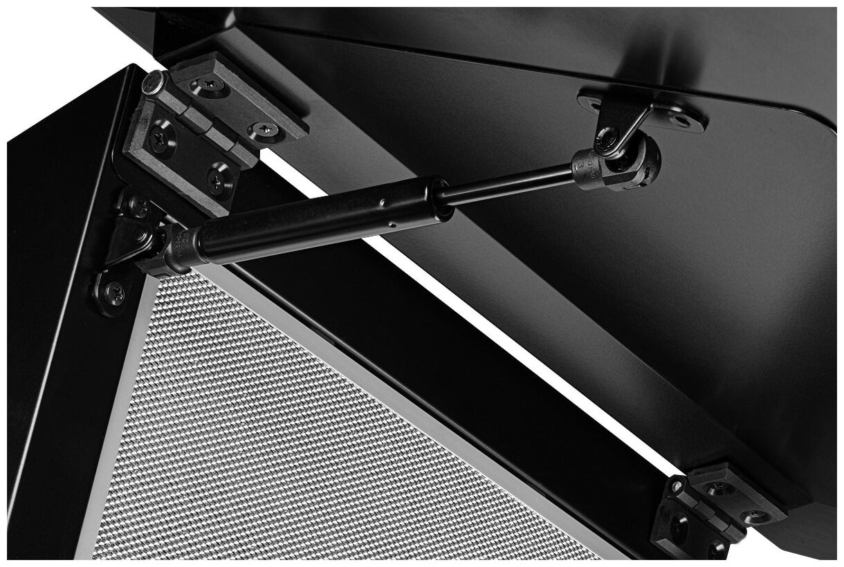 материал панели: закаленное стекло; количество ламп освещения: 2; мощность каждой лампы: 2 Вт; угольный фильтр KF-ES (приобретается отдельно); переходник 120−150; цвет короба: белая эмаль; коллекция Hi-Tech