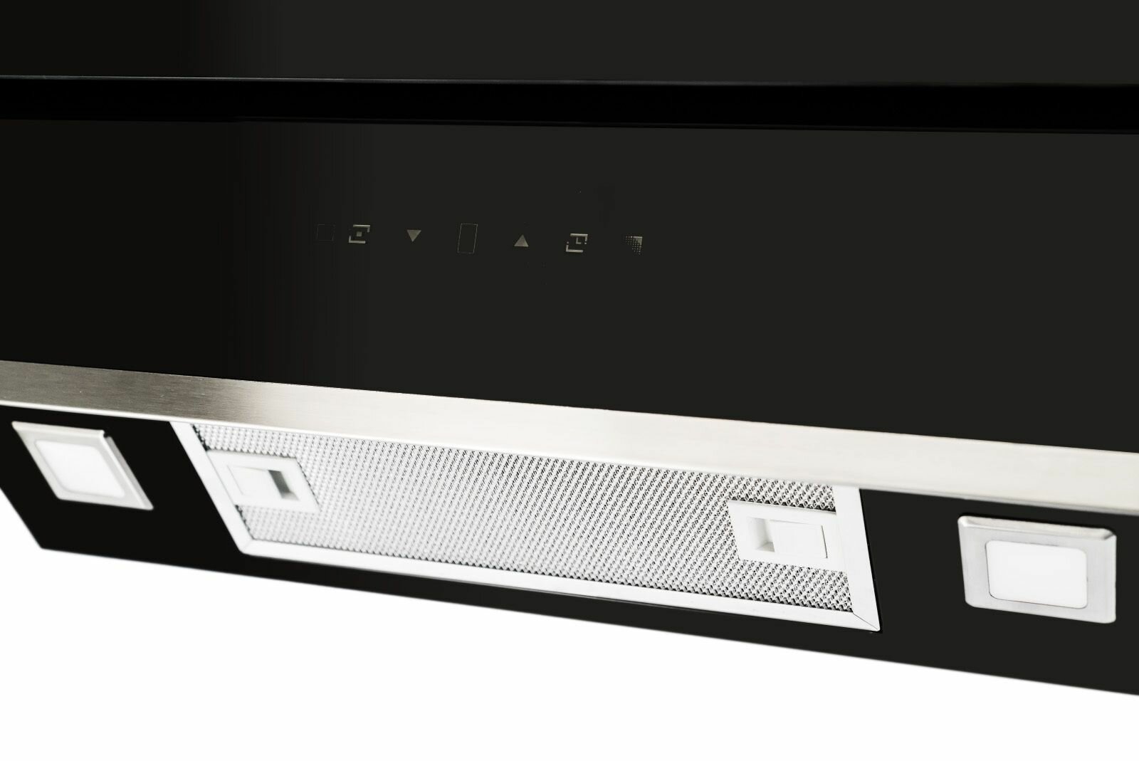 Элегантная черная наклонная вытяжка Kuppersberg F 630 B с передней панелью из закаленного стекла и корпусом из черной эмали может стать оригинальным дополнением кухни, оформленной в стиле хай-тек. Поскольку это устройство оснащено вторым воздухозаборником, процесс очистки даже самого просторного помещения от ожогов, копоти, дыма, ядовитых паров и неприятных запахов будет быстрым и легким.