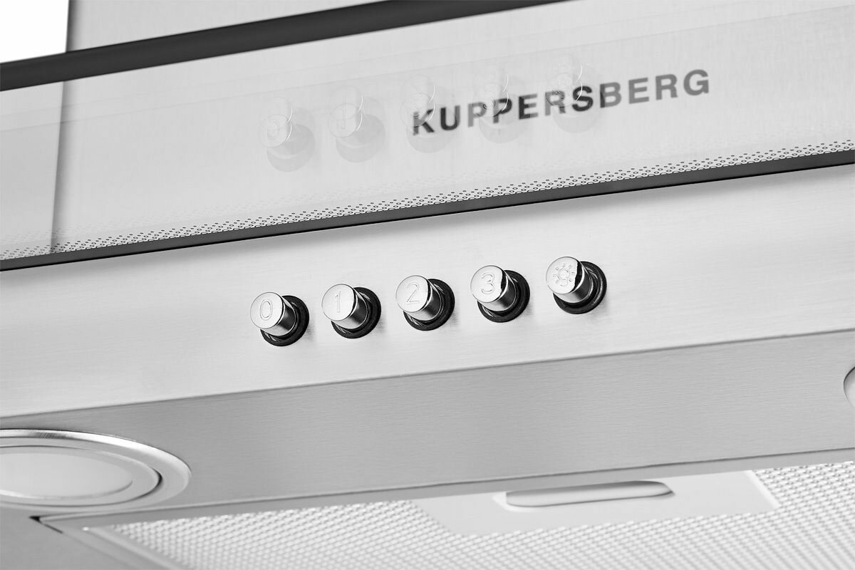 Купольная вытяжка Kuppersberg LORA 60 X лаконичного дизайна в цвете нержавеющей стали отлично впишется в формат кухни в стиле хай-тек. К тому же такое устройство быстро и надежно убережет комнату площадью около 20-25 м2 от неприятных последствий, связанных с прижиганием пищи на плите. Электронное кнопочное управление простое и удобное в использовании. Уход за устройством несложный.