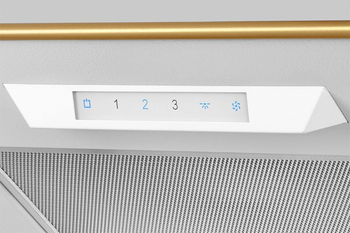Купольная вытяжка Kuppersberg ONDA 60 WB жемчужно-белого цвета с коробкой такого же оттенка и бронзовой фурнитурой обеспечивает быстрый отвод выхлопных газов в помещениях площадью до 25 м2. Это устройство оснащено электронным кнопочным управлением, переходником и обратным клапаном, оно эргономично, благодаря чему отлично впишется в интерьер Classic.