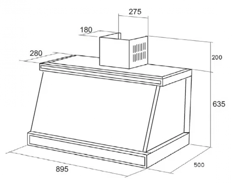 - Низкий уровень шума вытяжки
