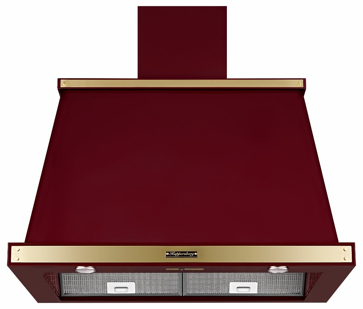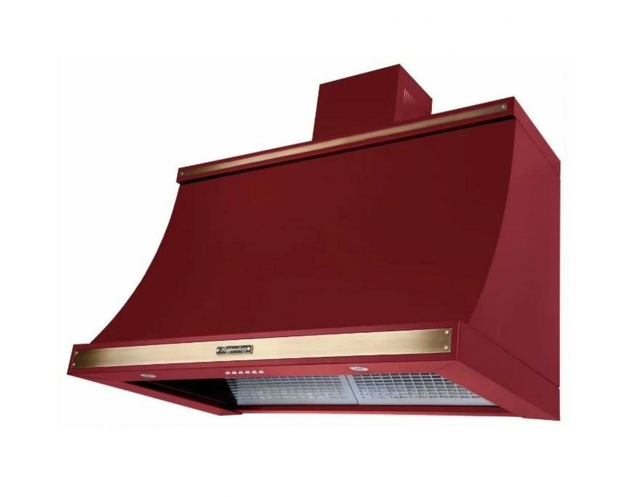 Рециркуляцию воздуха на кухне, оформленной в классическом стиле, лучше всего обеспечивает купольная вытяжка Kuppersberg T 969 BOR Bronze цвета бордо с бронзовой фурнитурой. Благодаря своей мощности устройство быстро и легко очистит коптильную комнату от вредных паров и неприятных запахов, возникающих при сжигании пищи. Подождите пару минут, и воздух станет чистым и свежим.