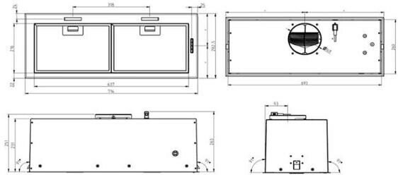Комплектация : Инструкция по монтажу и эксплуатации, монтажный комплект, сетевой кабель без вилки (находится внутри вытяжки)
